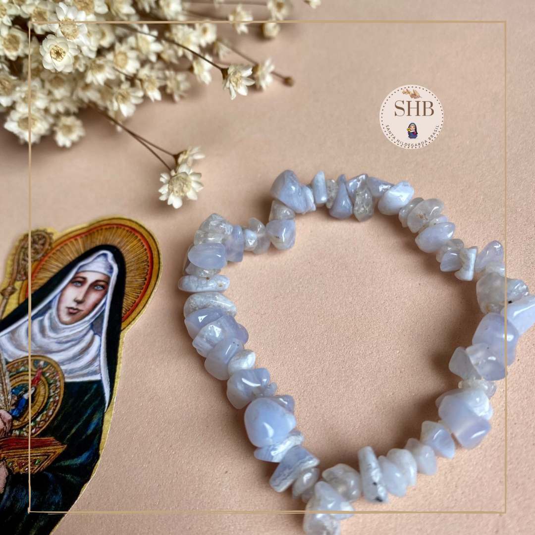 Produtos elaborados artesanalmente (terço, pulseiras, choker) inspirados nos ensinamentos de Santa Hildegarda de Bingen, Santa e Doutora da Igreja Católica.