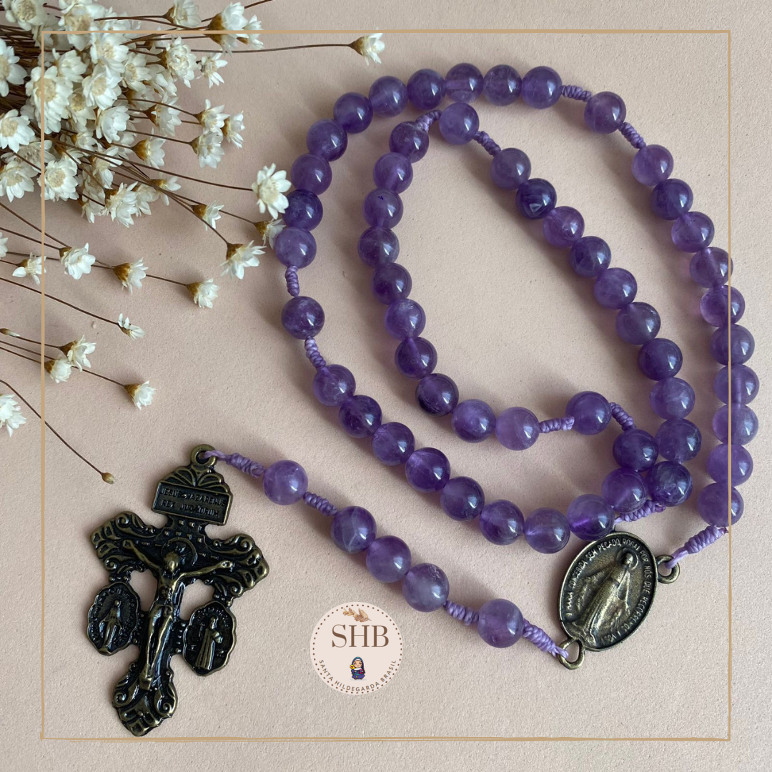 Produtos elaborados artesanalmente (terço, pulseiras, choker) inspirados nos ensinamentos de Santa Hildegarda de Bingen, Santa e Doutora da Igreja Católica.